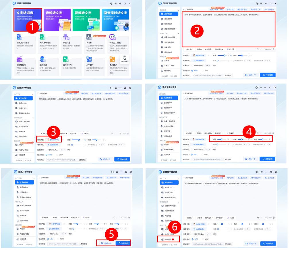 每组按照教师给定的内容和要求完成配音练习,需在 3 分钟内完成指定文字的配音工作,确保按顺序调节好语音类型、音量、语速、语调这四个参数,且配音内容完整。